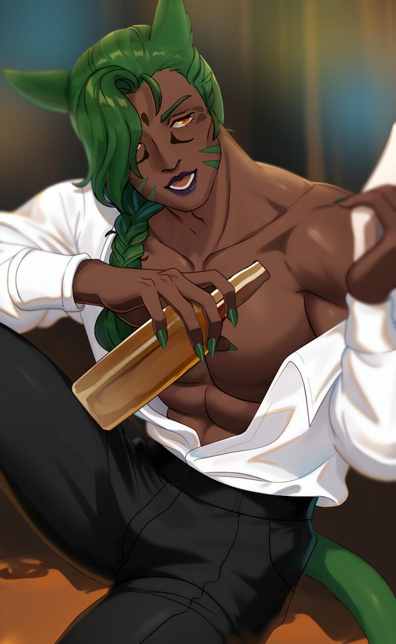 easy to get along with and very sociable. charming, flirtatious, playful, mischievous, carefree. likes to tease and press buttons. fondness for animals and summons.(c'yaluh is a liar. he lies about his name, tribe, place of birth--anything. despite outward appearances, very little about him is sincere. he is jaded, scornful, manipulative and only out for himself. chances are, he will not genuinely care about many people.in short: he is a bastard.)